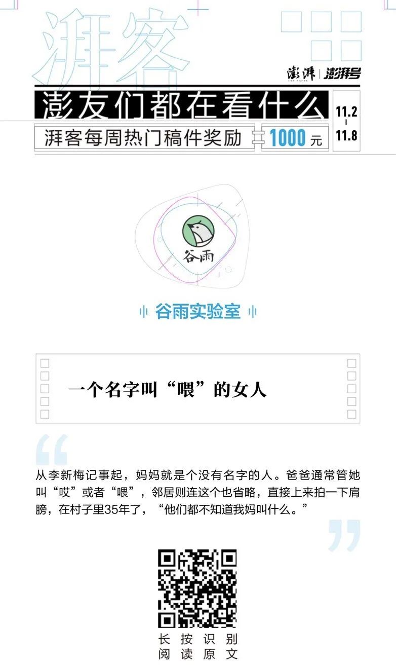 湃客一周熱榜 | 一個(gè)名字叫“喂”的女人、帶領(lǐng)殘疾人脫貧致富的腦癱廠長