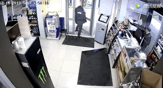 商店遭遇劫匪,大媽處驚不亂,直接用拖把劫匪趕出門外。