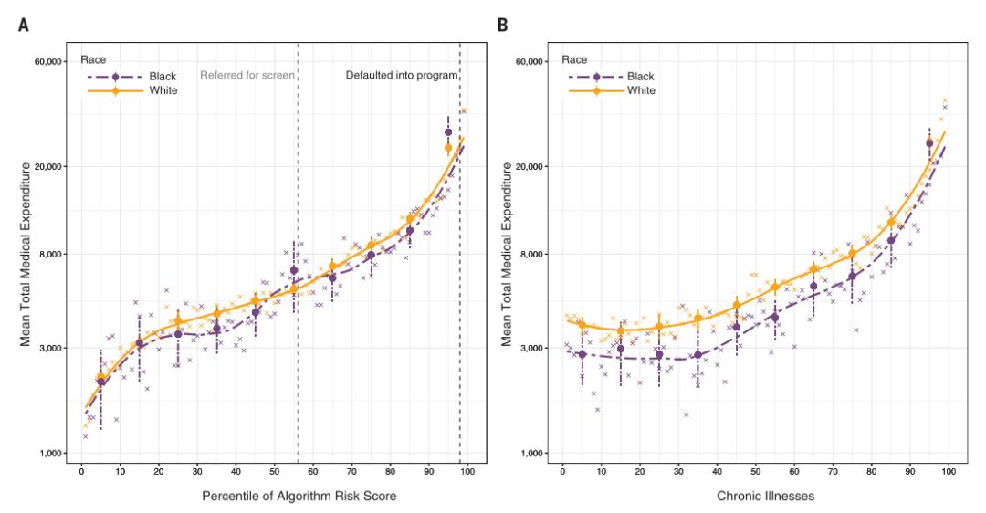 Obermeyer, Z., Powers, B., Vogeli, C., & Mullainathan, S. (2019). Dissecting racial bias in an algorithm used to manage the health of populations. 366(6464), 447-453. doi:10.1126/science.aax2342 %J Science
