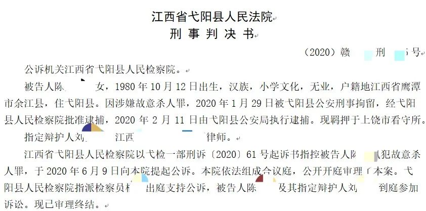 2020年8月14日,江西省弋陽縣人民法院以陳梅犯故意殺人罪,判處其有期徒刑四年六個(gè)月。(文中人物均為化名)
