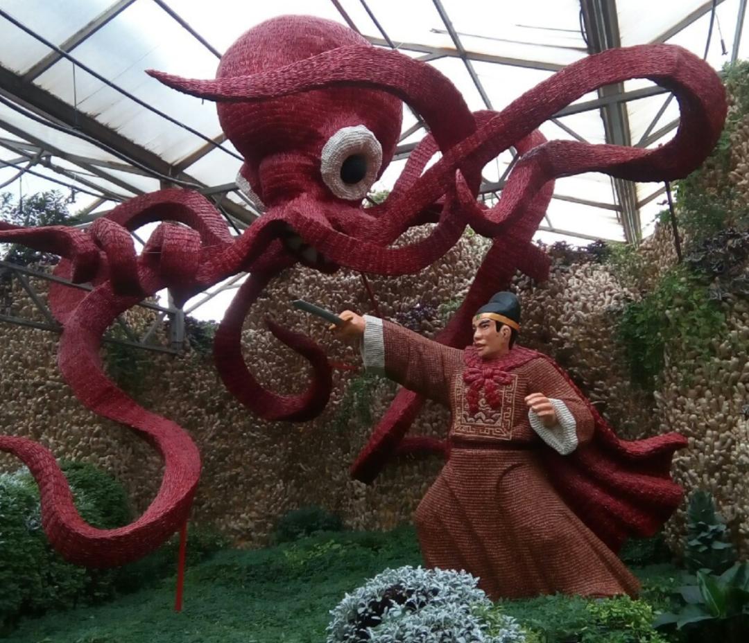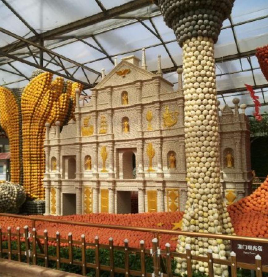 去一次菜博會,即可完成一次環(huán)球旅行,其中包括但不限于土豆金字塔、玉米獅身人面像、南瓜澳門觀光塔以及豆類媽祖。