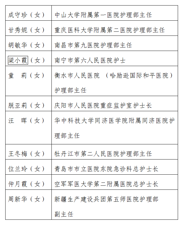 第48屆南丁格爾獎章中國擬推薦候選人公示,梁小霞等入選