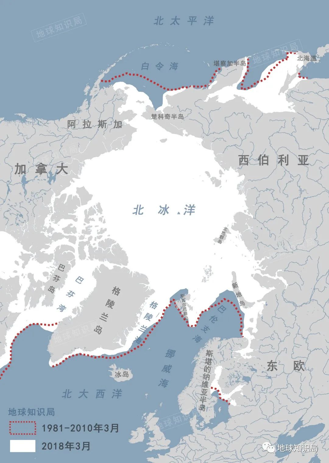 北冰洋2018年3月的海冰范圍