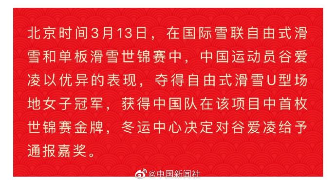 (原題為《冬運(yùn)中心通報(bào)嘉獎(jiǎng)谷愛(ài)凌》)