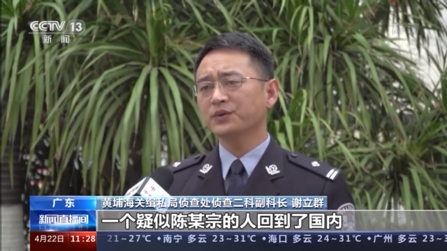 黃埔海關(guān)緝私局偵查處偵查二科副科長(zhǎng) 謝立群:2018年11月,我們得到一個(gè)消息,一個(gè)疑似陳某宗的人回到了國(guó)內(nèi),雖然他回國(guó)后深居簡(jiǎn)出,不敢隨意活動(dòng),但是我們還是掌握了他們的行蹤,并成功將其抓捕歸案。