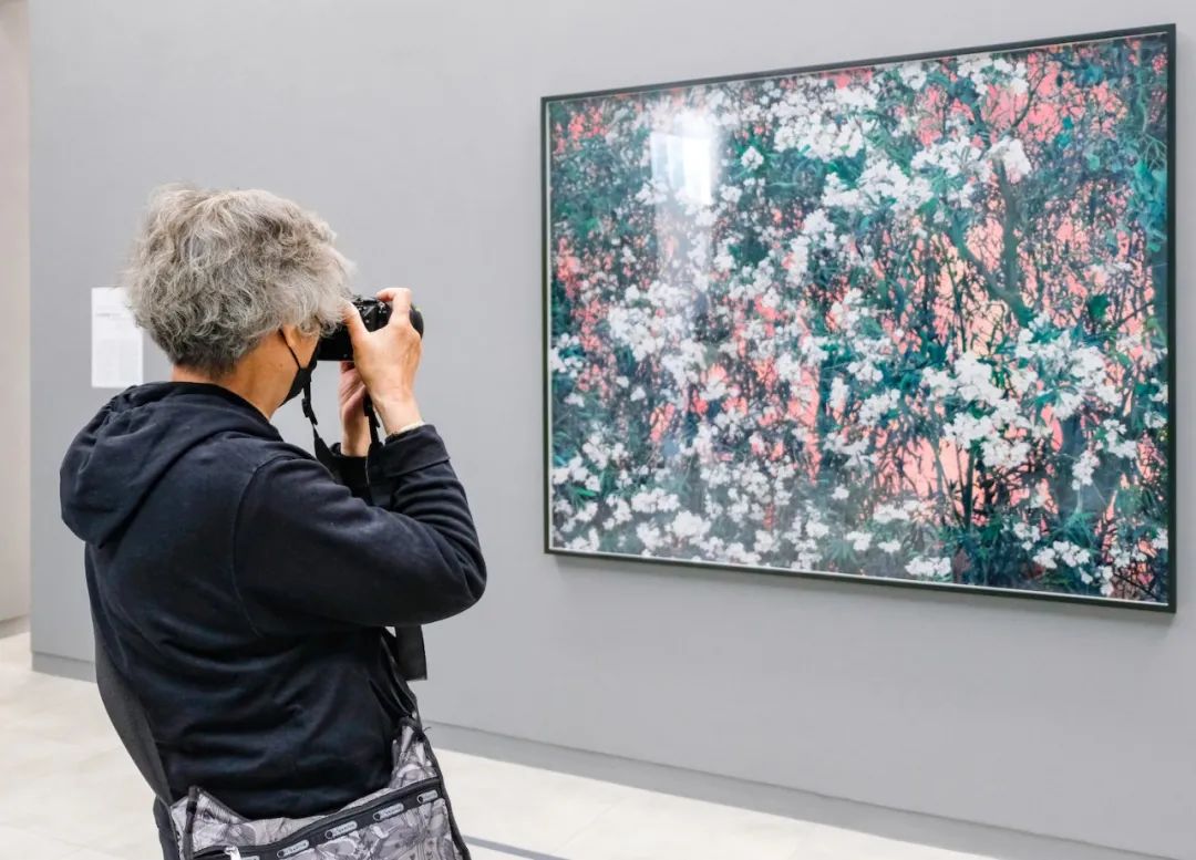 “我今年81歲,已經(jīng)退休很多年,拍照也有20多年了。這一次史國(guó)威的展覽很新奇,展出的作品很多是大自然的植物,第一次看到這樣的作品展出,以前展覽很多都是人像。我父親也是一個(gè)攝影師,在無錫從事風(fēng)光攝影。他以前也跟我講,過去拍風(fēng)景照、人物照都是要自己手工著色的。不過我父親是先把照片翻成黃色,用油彩上色,和史國(guó)威黑白照片,用水彩上色不一樣,所以這次我看到這個(gè)展覽就比較感興趣。2015年開館以來我就一直在關(guān)注上海攝影藝術(shù)中心,展覽一直很好,所以每次我都會(huì)過來?!?/p>