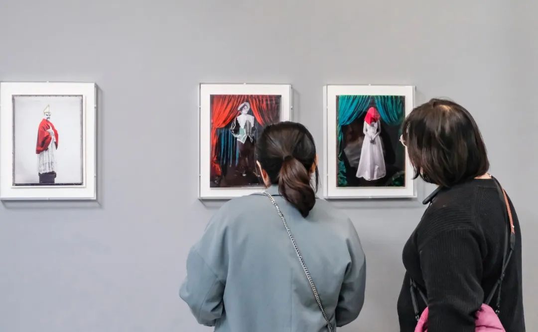 “我們都是做設(shè)計(jì)的,會(huì)來看這個(gè)展覽,第一是覺得展覽的海報(bào)很好看,第二個(gè)也很好奇史國(guó)威是怎么創(chuàng)作的,想了解他照片拍出來經(jīng)過了哪些處理和上色過程,最后形成作品。比較喜歡的是《多肉樂園》和《丑角》。我們本身是學(xué)美術(shù)的,在看展時(shí)會(huì)關(guān)注色彩的運(yùn)用,從視覺開始,再去看藝術(shù)家細(xì)一點(diǎn)的情感表達(dá)。《多肉樂園》的畫面里有很多仙人掌,有草地,大面積不同深淺的綠,又加一點(diǎn)偏紫的紅色,很好看?!冻蠼恰愤@幅作品是一個(gè)小男孩,人物本身和其他景物就不太一樣,人肯定會(huì)有故事情節(jié)在里面,他的情緒表達(dá)就非常直接?!?/p>