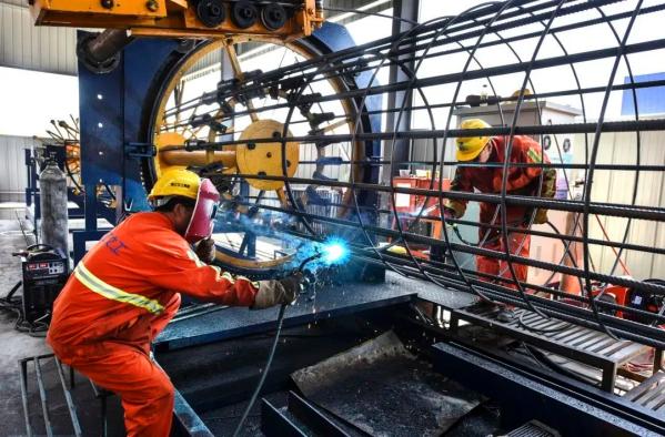 ▲ 杭海城鐵首個(gè)立柱鋼筋籠正在焊接。攝于2017年4月28日