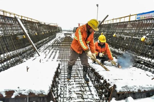 ▲ 2018年1月27日,一場大雪把海寧銀裝素裹。城鐵建設(shè)工人冒風(fēng)雪,戰(zhàn)嚴(yán)寒,奮戰(zhàn)在一線。