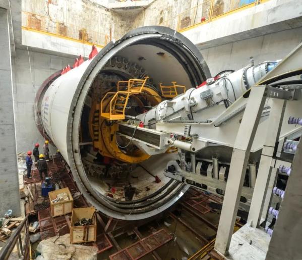 ▲ 2018年4月22日,首條盾構(gòu)機(jī)在杭海城鐵第一標(biāo)段順利下井。