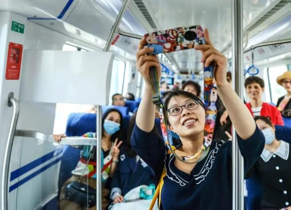 ▲ 試乘城鐵留倩影。2021年5月7日,海寧市委黨校莊小丹第一次試乘杭海城鐵,激動(dòng)的她留下幸福時(shí)刻。