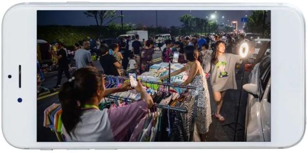 2020年6月,浙江海寧桐溪社區(qū) | 夏夜,社區(qū)開設(shè)的地?cái)偵?,一群年輕人把直播搬到了夜市現(xiàn)場。