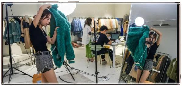 2020年7月,浙江海寧皮革城 | 疫情下的服飾店紛紛邀請網(wǎng)紅模特駐店,轉(zhuǎn)戰(zhàn)線上直播帶貨。