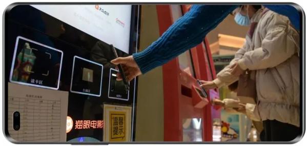 2020年12月,浙江海寧銀泰傳奇影院 | 圣誕夜,年輕人很樂意通過手機(jī)在影院APP線上搶票、現(xiàn)場掃描取票,自助完成購票過程。