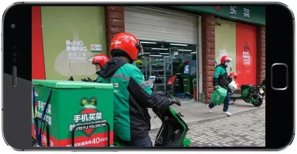 2020年12月,浙江海寧西山路 | 市區(qū)新開了一家手機(jī)買菜的配送店,眾多快遞小哥在店外候單,承諾最快二十九分鐘送達(dá)。