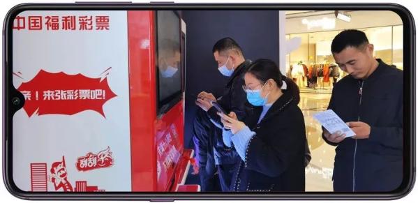 2021年3月,浙江海寧愛琴海購物中心 | 親!來張彩票;商場里設(shè)置的福利彩票無人售票機(jī)吸引了不少人。