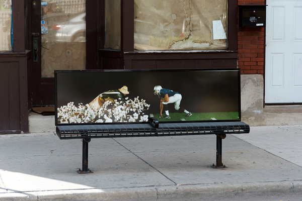 2014年9月芝加哥的“Bench Marks”項目把他的作品印在長椅靠背上,成為街景,視覺效果非常棒。