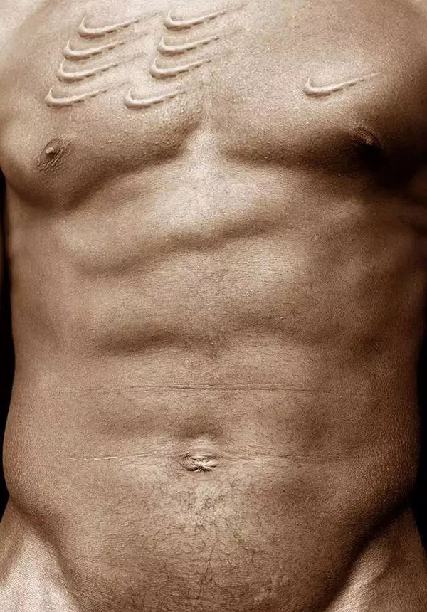 在Unbranded系列中他探索了非洲裔美男性黑人的身體視覺文化,將品牌標志和口號抹去,留下黑色的身體“為自己發(fā)聲”,一些圖片包含非常明確的種族主義和性別歧視的刻板印象,一些則體現(xiàn)出更多的矛盾,在脫離了商業(yè)背景后顯露得陌生甚至不安。