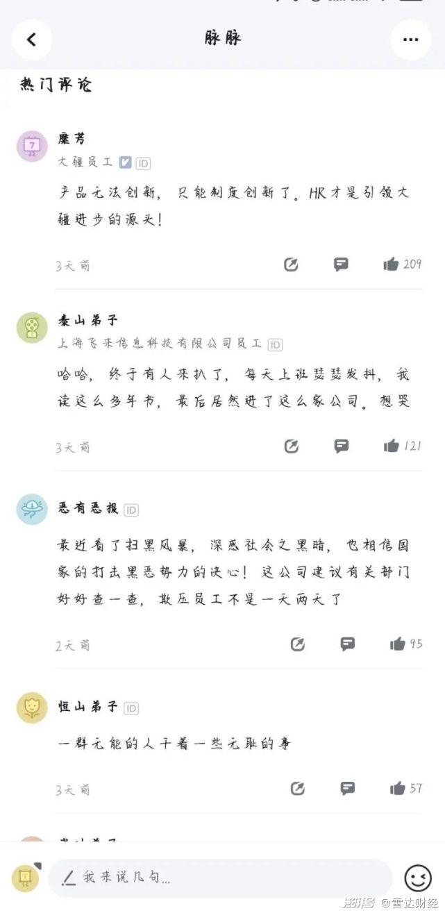 認(rèn)證為上海飛來信息科技有限公司員工的人員稱,“終于有人來扒了,每天上班瑟瑟發(fā)抖……”據(jù)天眼查顯示,上海飛來信息科技有限公司為深圳市大疆創(chuàng)新科技有限公司旗下全資子公司。