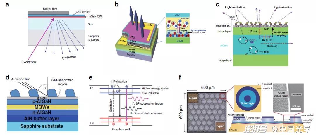圖7. 不同的等離子激元增強(qiáng)LED效率的方法