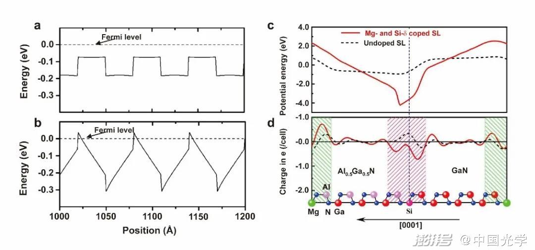 圖8. 極化效應(yīng)作用下不同摻雜超晶格的能帶結(jié)構(gòu)