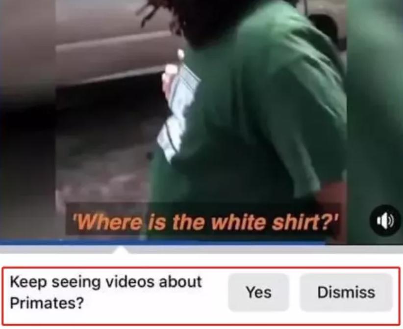 英國(guó)《每日郵報(bào)》 6 月 27 日發(fā)布的一段視頻最近在Facebook忽然火了起來(lái),但其引發(fā)關(guān)注的原因并不是因?yàn)橐曨l本身,而是因?yàn)樗淮蛏系摹皹?biāo)簽":這是一段關(guān)于一位黑人的視頻,但所有觀看該視頻的用戶都會(huì)收到一條提示,詢問(wèn)他們是否想“繼續(xù)觀看有關(guān)靈長(zhǎng)類動(dòng)物的視頻”。