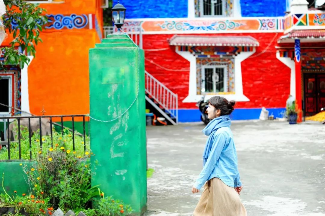 位于奶子溝中段,沿S203公路就可以偶遇,這個村落里的所有房子,都是五彩斑斕的。