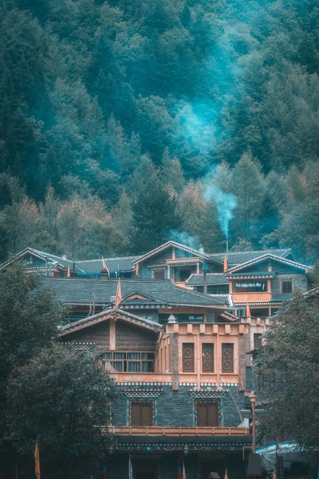 建筑是它的看點,錯落有致的散落在山谷坡地,很有城堡的氣勢,很多旅行者都稱贊它為“川西北的小布達拉宮”。