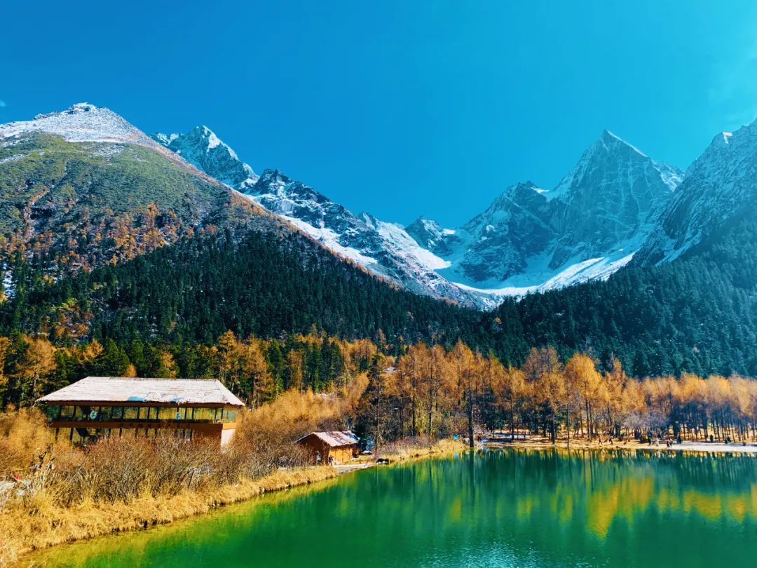 與九寨溝相比,它的名氣稍弱,卻也美的獨立。藏在四姑娘山背后,雪山為幕紅葉遍布。