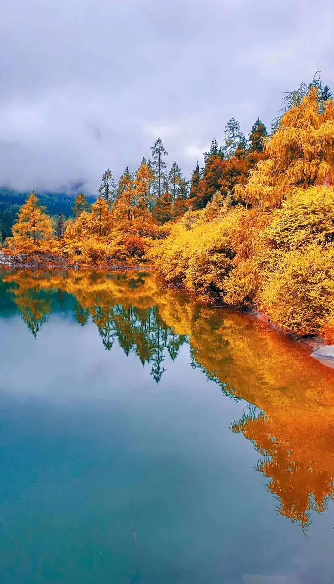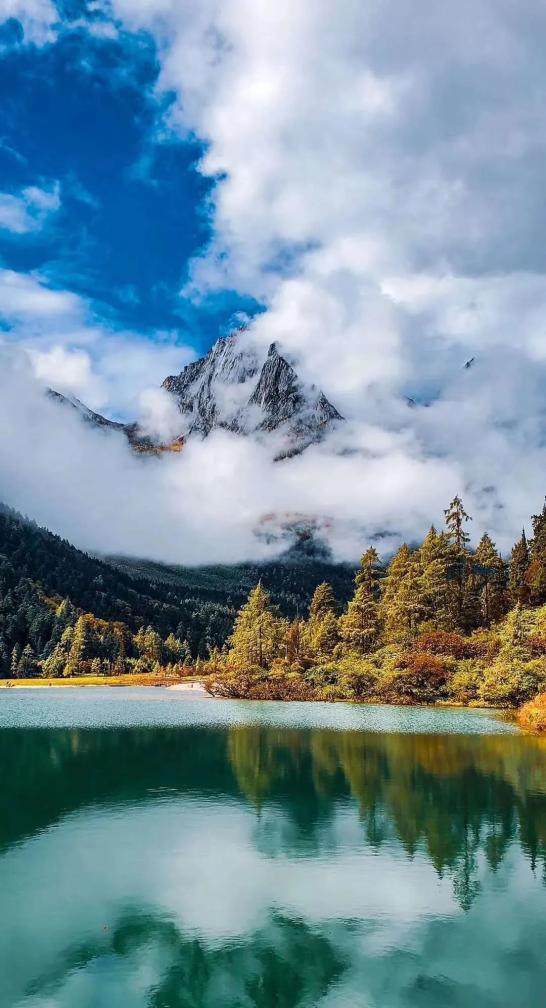 四季都一如既往的平靜,湖水會隨著季節(jié)而變化,秋季帶點靛藍的夢幻,彩林粼粼投映,安靜又治愈,有點點九寨溝10年前的味道哦。