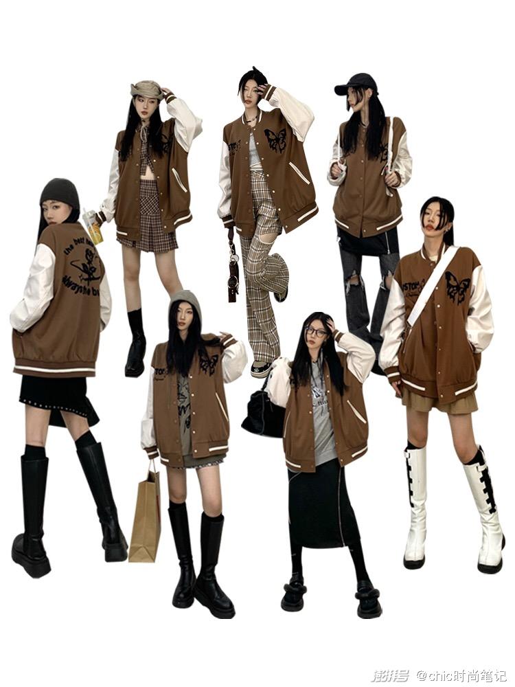 如果是棒球開衫外套的話,那它的可塑性就更大了。內(nèi)搭一件包臀的黑色短款針織裙,即便是黑絲上場(chǎng),也不會(huì)覺得俗氣或者廉價(jià)了。