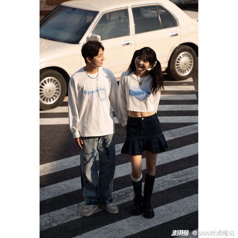 換做不同長(zhǎng)度的字母衛(wèi)衣,男生搭配寬松的T恤牛仔褲,女孩子的短款配上高腰百褶裙,如今一模一樣的情侶衫都已經(jīng)爛大街了,有時(shí)候情侶之間的穿著存在某種聯(lián)系,反而更為討喜。
