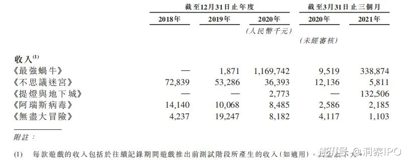 之所以能在2020年實(shí)現(xiàn)營(yíng)收暴漲,源于其當(dāng)年上線的放置類(lèi)游戲《最強(qiáng)蝸牛》。僅在2020年,《最強(qiáng)蝸?!肪蜑榍啻捎螒驇?lái)了了11.7億元的收入,占同期其總收入的95.34%。