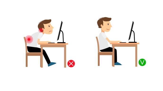 正確的坐姿應(yīng)該是雙腿屈膝90度,腰部適當(dāng)后傾,腰部可以墊一個(gè)靠墊,緩解壓力。