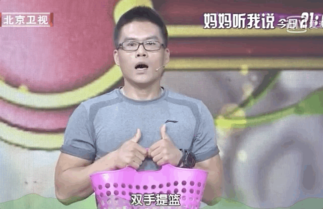 稍稍蹲下,再起立,起立的過(guò)程中可以順勢(shì)屈肘,將菜籃提到胸前,這樣可以同時(shí)鍛煉肩臂部的肌肉。
