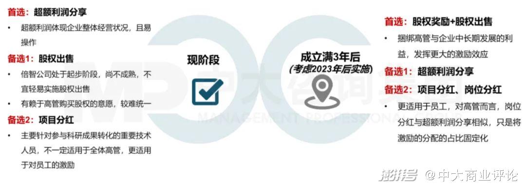 在該企業(yè)重點子公司當中,有一家科技型子公司明確滿足《國有科技型企業(yè)股權(quán)和分紅激勵暫行辦法》(財資〔2016〕4號)實施激勵的基本條件。與客戶充分討論后,建議現(xiàn)階段該企業(yè)繼續(xù)沿用超額利潤分享的激勵方式,未來達到股權(quán)激勵實施條件后可嘗試采用股權(quán)獎勵、股權(quán)出售及崗位分紅的多元化激勵方式。