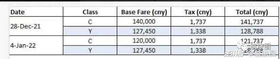 據(jù)航旅圈了解,這張價(jià)格表并不是機(jī)票代理賣給回國(guó)消費(fèi)者的價(jià)格,而是土耳其航空給機(jī)票代理的報(bào)價(jià)。而在疫情前的2019年,乘坐土航從倫敦到上海,兩段航程的商務(wù)艙只需要1.3萬(wàn)元就能買到。