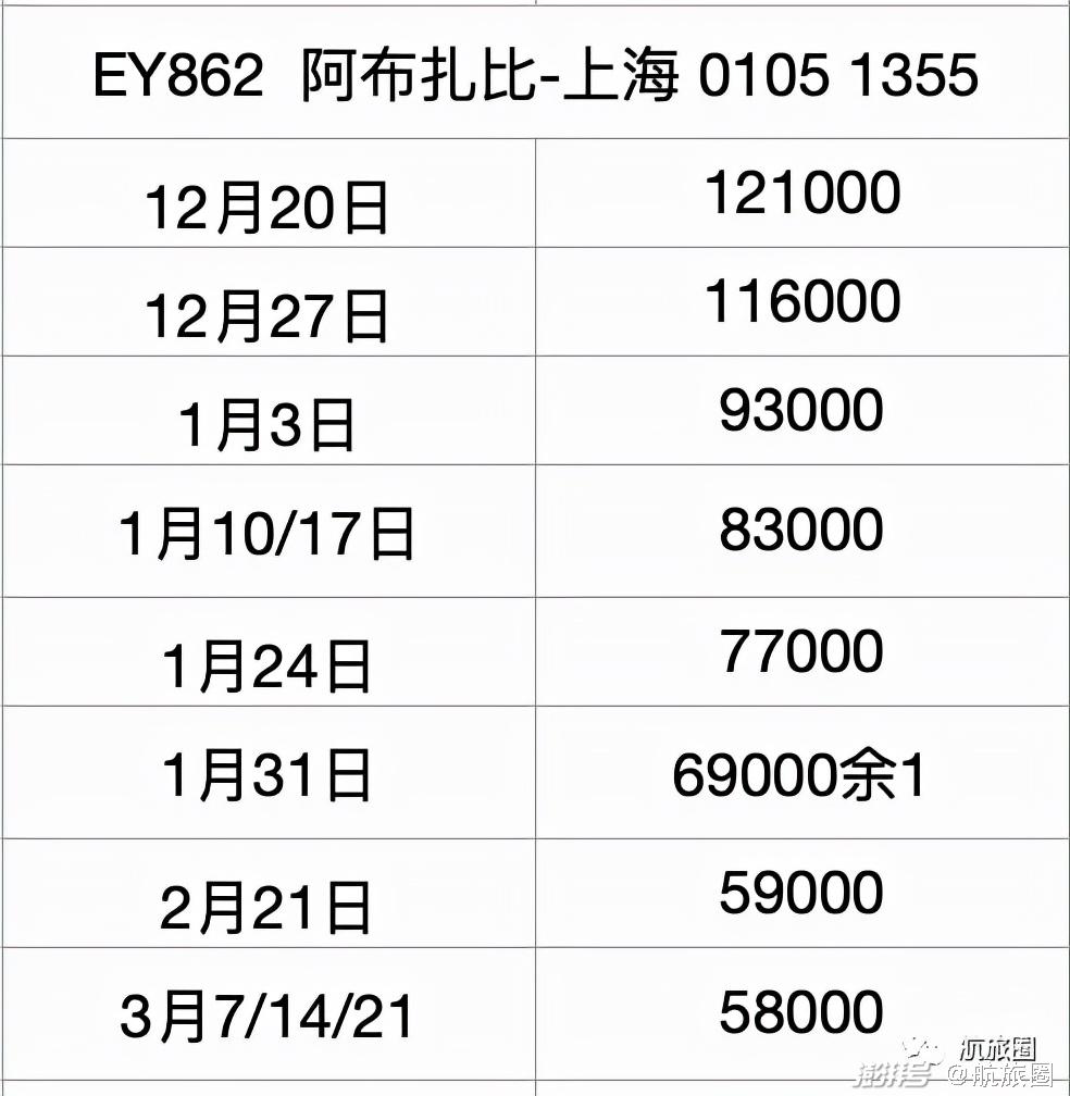 上表為旅行社發(fā)來(lái)的阿提哈德航空近期回國(guó)票價(jià)