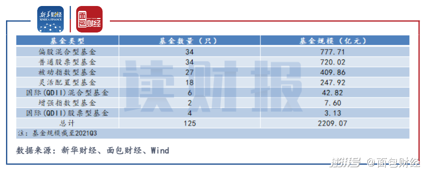 根據(jù)Wind醫(yī)療主題基金分類,截至2021年12月31日共有125只醫(yī)療主題基金(同時擁有A/C類基金的僅保留A類基金,數(shù)據(jù)不全的基金剔除)。截至2021年三季度末,這125只基金的合計規(guī)模超過2200億元。
