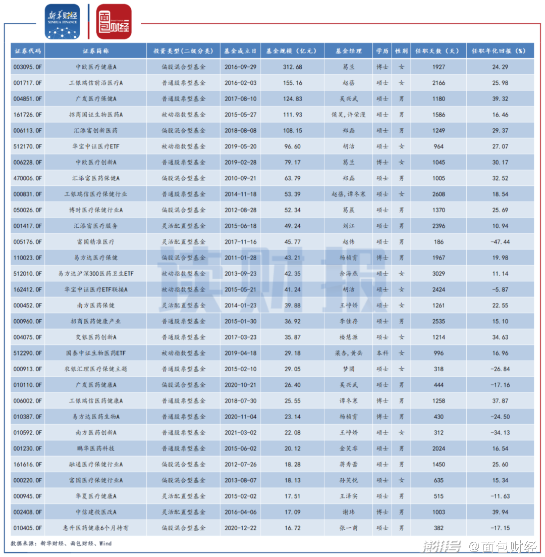 此外,廣發(fā)醫(yī)療保健A、招商國證生物醫(yī)藥A、匯添富創(chuàng)新醫(yī)藥的基金規(guī)模也超過100億元。其中,廣發(fā)醫(yī)療保健A的基金經(jīng)理吳興武任職內(nèi)的年化回報達39.32%。
