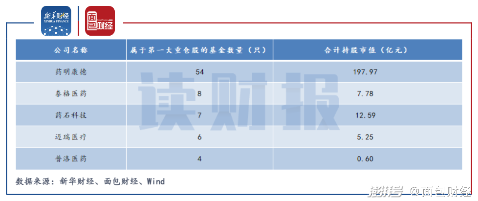 圖4:醫(yī)療主題基金的第一大重倉股排名