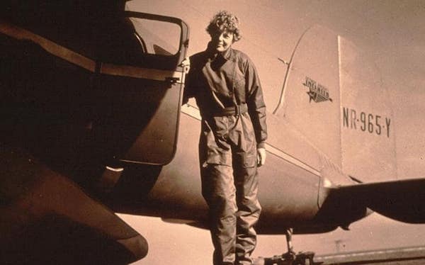 1920年在長島的一次飛行表演徹底改變了阿梅利亞·埃爾哈特的人生:在空中只呆了十分鐘她就學會了飛行。她很快就擁有了自己的飛機,取名“金絲雀”。她把頭發(fā)剪短,據(jù)說還穿著飛行夾克睡覺,以便讓它看上去更舊。1932年,她成為第一個獨自不間斷飛行穿越大西洋的女性。幾年后,悲劇發(fā)生了。1937年,在她嘗試環(huán)球飛行時,她的飛機在前往一片距離火奴魯魯1700海里的無人礁石Howland島時失蹤。1939年,她被宣告死亡。