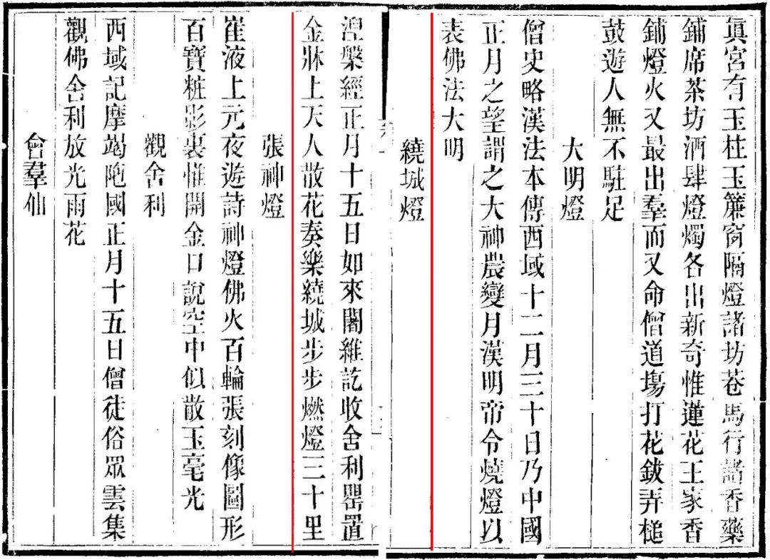 《歲時廣記》(《十萬卷樓叢書》刻本)中關于“漢明帝令燒燈以表佛法大明”以及“涅槃經正月十五奏樂繞城燃燈”的內容