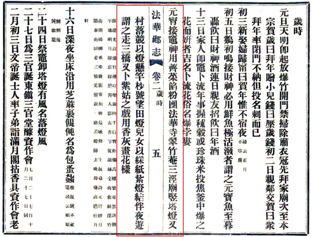 《嘉慶法華鄉(xiāng)志》中關于法華寺元宵燈會的內容