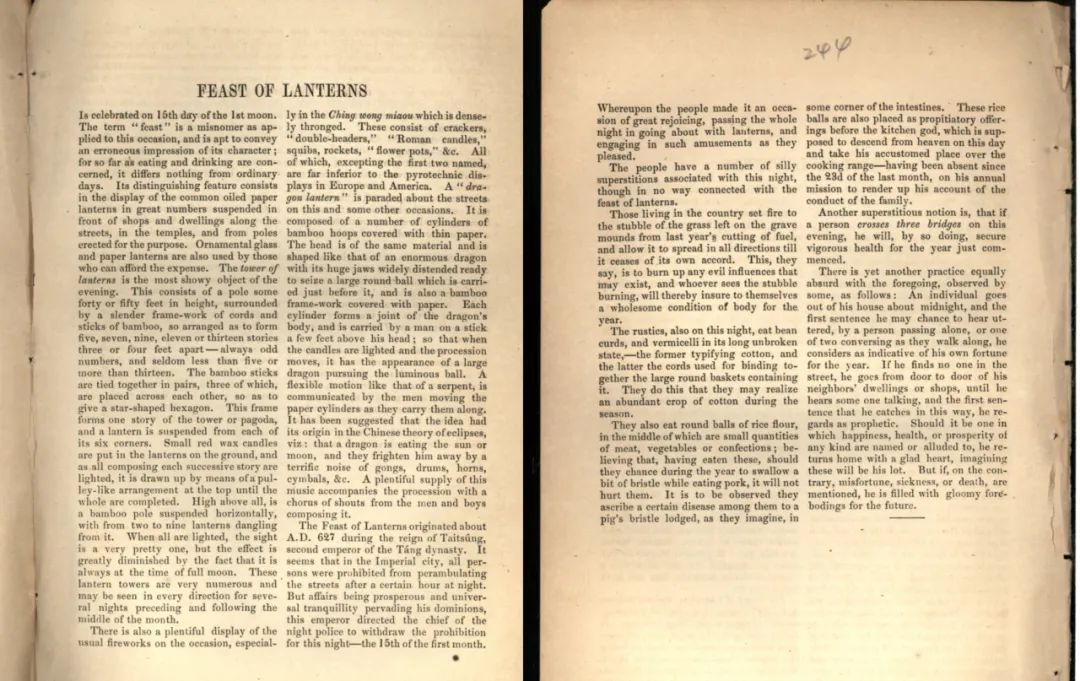 上海最早,也是中國內地最早的一本年鑒——Shanghai almanac 1852 中刊載的上海元宵燈會專文