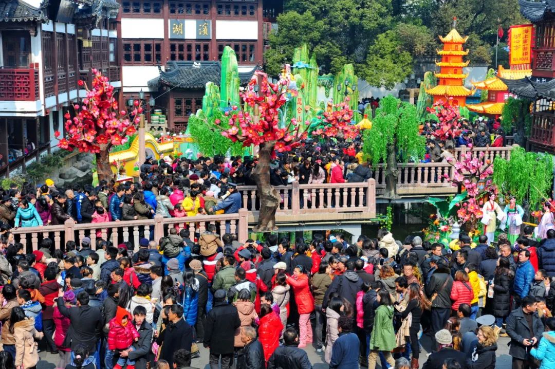 2013年豫園燈會,九曲橋旁,人頭攢動