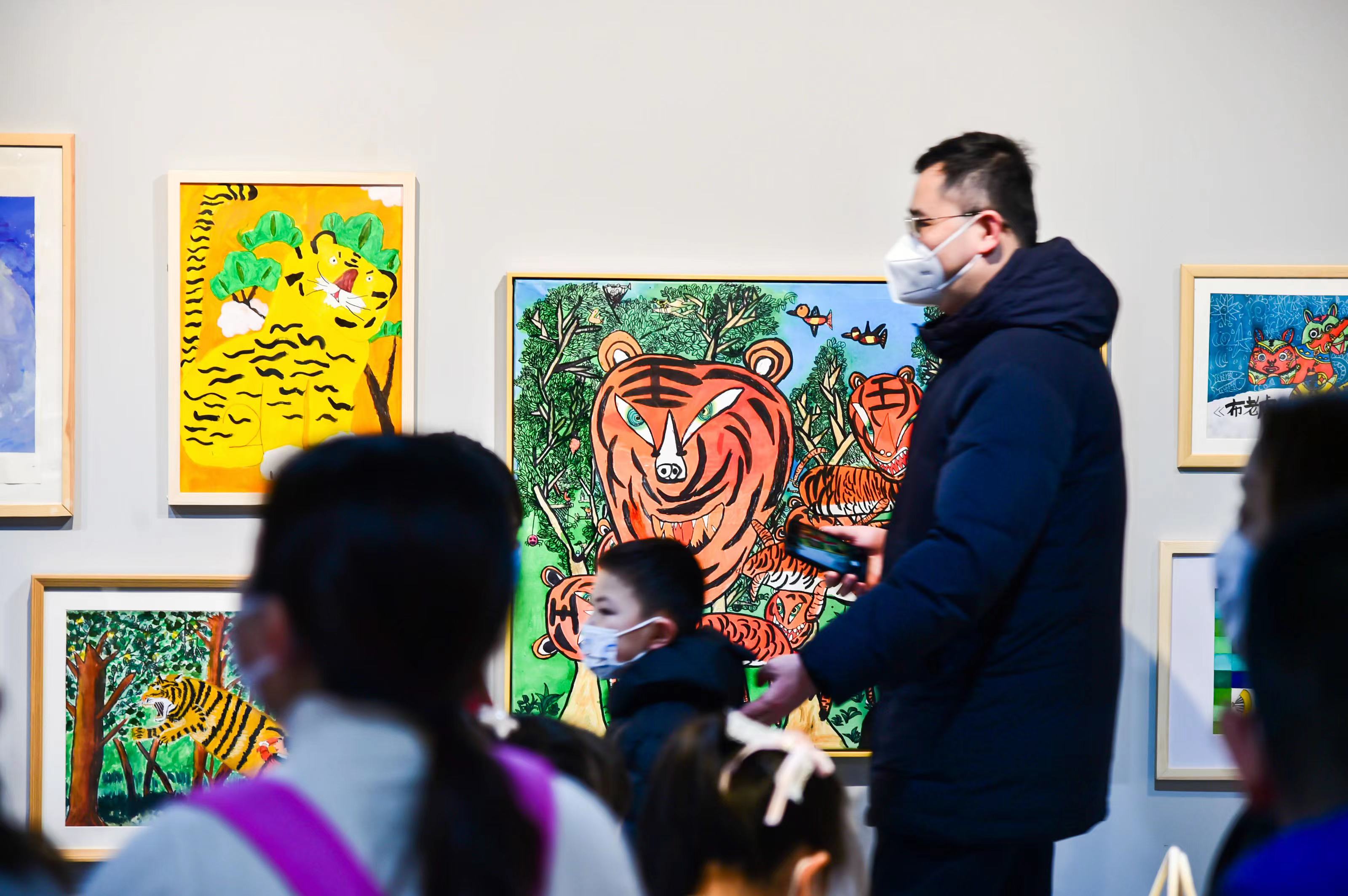 從2010年第一年策劃少兒生肖繪畫作品展,到去年2021年,生肖畫展已經走過了第一個十二年?!敖衲晔切乱惠喌拈_始。我們并不只停留在讓孩子‘虎年’畫‘虎’,而是希望他們的創(chuàng)作是有了一定生肖文化知識積累,加上自我的認知打磨之后,產生的自發(fā)過程?!焙鐦虍敶囆g館策展團隊負責人表示,希望孩子們在創(chuàng)作的過程中能夠增加民族文化的認知度和認同感。