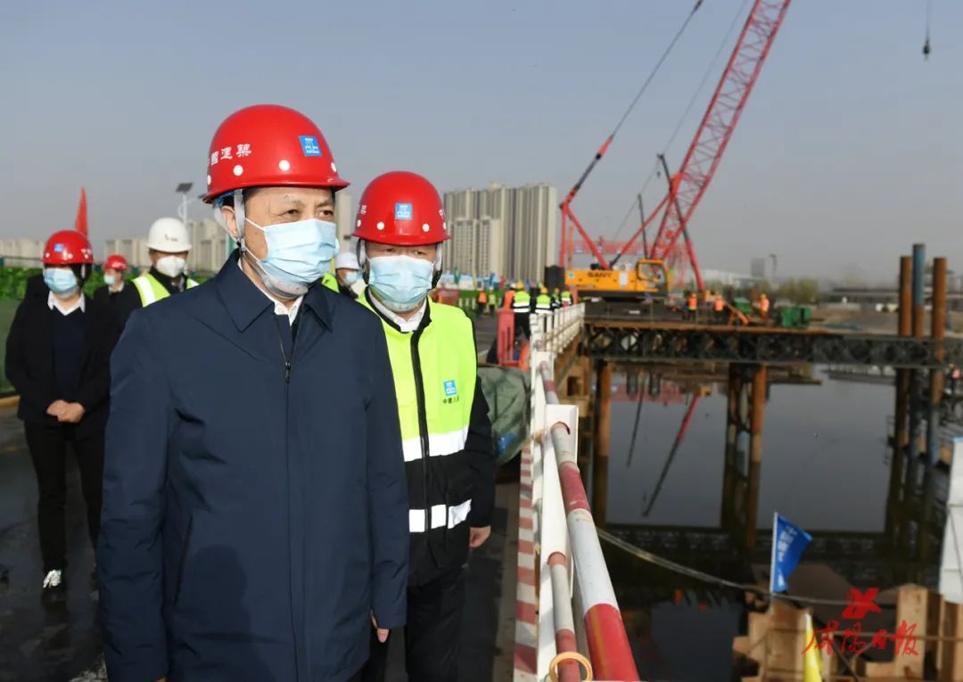 市委書(shū)記夏曉中在渭河高新大橋施工現(xiàn)場(chǎng)調(diào)研。