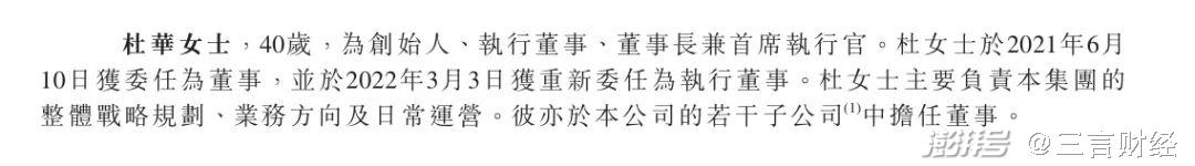公司創(chuàng)始人杜華擔(dān)任執(zhí)行董事、董事長(zhǎng)兼首席執(zhí)行官,主要負(fù)責(zé)整體戰(zhàn)略規(guī)劃、業(yè)務(wù)方向及日常運(yùn)營(yíng)。