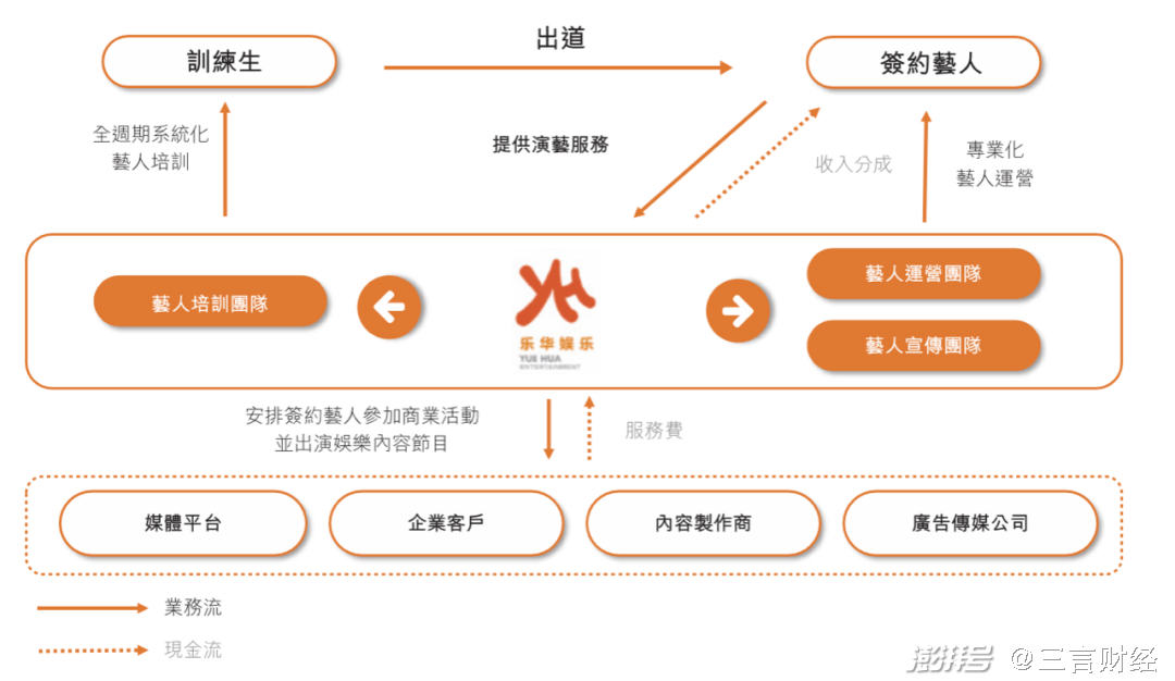 若媒體平臺(tái)是共同管理,那么樂華娛樂與平臺(tái)將收取其運(yùn)營(yíng)該等藝人產(chǎn)生的收入,并與對(duì)方分成收入。之后,根據(jù)與藝人簽訂的管理合同,公司將從平臺(tái)獲得的收入,以及自身獲得的收入支付給平臺(tái)后的剩余收入分配給簽約藝人。